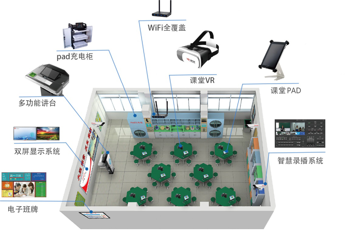 (5) 智能化控制可实现教室内环境控制设备、音视频采集设备、多媒体教学设备的集中一体控制,可快速完成课前准备,以节约时间,提升课堂效率;