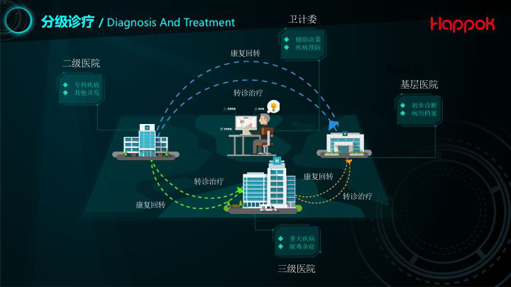 北京汉博信息技术有限公司自主研发的Happok分级诊疗平台,覆盖乌海全市各级医疗机构,其上下转诊、多方会诊、患者数据汇集共享、远程医疗、数据管理等应用,至今已惠及数十家公立医疗机构及城乡社区卫生服务机构。通过基层首诊、上下转诊、多方会诊、急慢分治的可视化全流程管理,改善就医路径,有效解决信息无共享、机构分工不合理等问题。